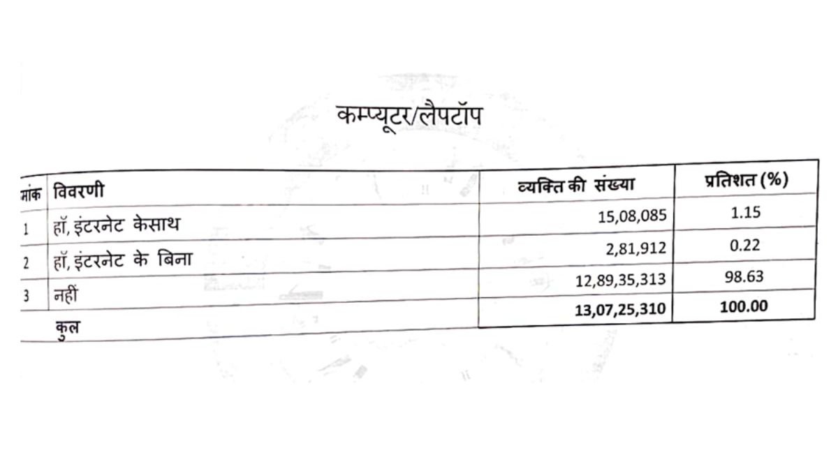 दरअसल, बिहार में जब जेडीयू महागठबंधन का हिस्सा थी तो नीतीश-तेजस्वी की साझा सरकार ने जातिगत सर्वे कराया था। इसकी रिपोर्ट में लोगों के पास कंप्यूटर और लैपटॉप की उपलब्धता की जानकारी भी सामने आई थी। इतना ही नहीं, यह पता लगा था कि किस जाति के लोगों के पास इंटरनेट कनेक्टविटी वाला लैपटॉप या कंप्यूटर है या नहीं।