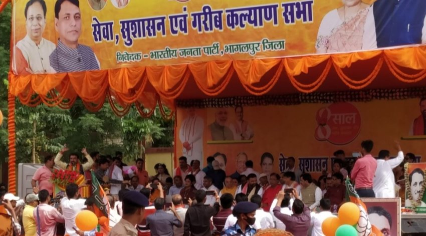 प्रधानमंत्री नरेंद्र मोदी के केंद्र में आठ साल पूरा होने पर बिहार के भागलपुर में सोमवार (13 जून) को भाजपा नेताओं के साथ-साथ केंद्रीय और प्रदेश के मंत्रियों का जमावड़ा हुआ। यह आयोजन भागलपुर के लाजपत पार्क में हुआ। पर जितनी भीड़ मंच पर थी उतनी भीड़ श्रोताओं या कार्यकर्ताओं की नहीं थी। इस दौरान पीछे बहुत सारी कुर्सियां खाली पड़ी थीं और सभा शुरू होते ही ज्यादातर महिलाएं सभा स्थल से निकल गईं।