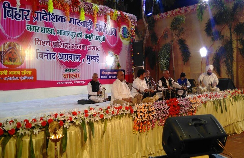 बिहार में भागलपुर को मिनी राजस्थान कहा जाता है। यहां काफी संख्या में राजस्थानी समाज के लोग रहते हैं जो अब बिहार की आबोहवा में घुल-मिल गए हैं। किसी की चार पीढ़ी तो किसी की पांच पीढ़ी पहले बिहार आई थी। तब से ये यहीं रह रहे हैं। मोटामोटी व्यापार पर भी इनका कब्जा है। इनमें बनिया, ब्राह्मण, नाई, धोबी, छिप्पी, मनियार सभी जाति-धर्म के लोग हैं। रंगरेज और मनियार मुस्लिम समुदाय के भले हों मगर भाषा इनकी आज भी राजस्थानी है। यह मारवाड़ी समाज की खासियत है। इनकी भाषा और पहनावे में कोई खास बदलाव नहीं आ सका है। भागलपुर और आसपास मारवाड़ियों की आबादी अच्छी है लेकिन मारवाड़ी सम्मेलन संस्था पर मुठ्ठीभर लोगों का कब्जा है। इसमें तकरीबन 500 सदस्य हैं। संस्था के एक सक्रिय सदस्य श्रवण शर्मा बताते हैं कि ये लोग सदस्यता में इजाफा पसंद नहीं करते। तभी दूसरे किसी को संस्था से नहीं जोड़ते। 25 से 30 लोग कार्यकारिणी में है, इन्हीं का दबदबा है। बाकी मूकदर्शक लेकिन इस भजन संध्या के आयोजन ने लोगों को अब मुखर कर दिया है।