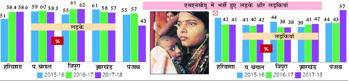 केंद्रीय स्वास्थ्य मंत्रालय की हाल में आई रपट बताती है कि देश भर मे तीन साल में शिशु गहन चिकित्सा इकाई में भर्ती होने वाले बच्चों में लड़कों की संख्या ज्यादा है। इसका अर्थ यह है कि नवजात लड़का अगर बीमार पड़ता है तो उसे हर स्तर पर इलाज कराने व बचाने की कोशिश होती है भले वह जीवन भर शारीरिक या मानसिक विकलांग ही क्यों न रहे। देश भर में 700 बीमार शिशु चिकित्सा इकाई (एसएनसीयू) होने के बावजूद लड़कियों को फायदा कम मिल पाता है। 2016-17 में इन केंद्रों में भर्ती लड़कों का फीसद 58.6 था जो 17-18 में 58.8 हो गया। लड़कियों की तादाद उसी अनुपात में कम हुई।