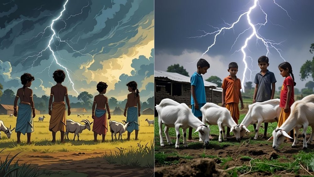 सराय अकिल थाने के प्रभारी सुनील कुमार ने बताया कि जुगराजपुर गांव के चार बच्चे- सतीश कुमार (13), मनी (13), पवन दास और दीपांजलि बकरियां चरा रहे थे। इस दौरान तेज गर्जना के साथ आकाशीय बिजली गिरी और चारों बच्चे इसकी चपेट में आ गए।