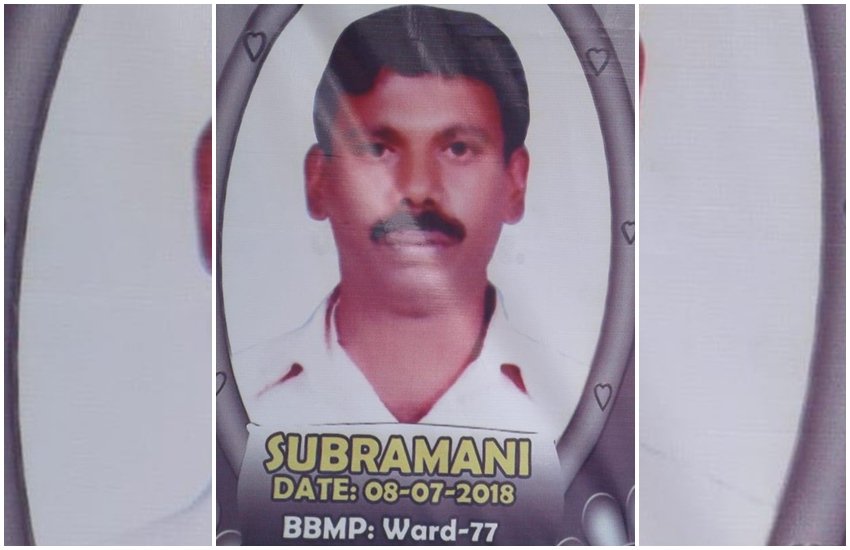 बेंगलुरु का सफाई कर्मचारी सुब्रमणि पिछले 15 सालों से सड़क पर झाड़ू लगाने का काम करता था, लेकिन बृहत बेंगलुरु महानगर पालिका (बीबीएमपी) ने उसे पिछले सात महीनों से वेतन नहीं दिया था, जिसके कारण सुब्रमणि बेहद परेशान था। रोज-रोज की तंगी और बेबसी से परेशान होकर सुब्रमणि ने रविवार को आत्महत्या कर ली। सुब्रमणि 7 महीने तक भूख, गरीबी और तिरस्कार की जिंदगी जीता रहा। वह रोज अपने काम पर जाता था, लेकिन उसे महानगर पालिका ने सात महीनों से उसका वेतन नहीं दिया था, जिसके कारण उसके लिए अपने परिवार का पालन-पोषण करना मुश्किल होता जा रहा था। 32 वर्षीय सुब्रमणि के जाने के बाद अब उसकी पत्नी और दो बच्चे अकेले पड़ गए हैं।