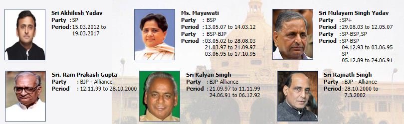 एक साल के राष्ट्रपति शासन के बाद 1993 में मुलायम सिंह यादव, 1995 और 1997 में मायावती मुख्यमंत्री बनीं। इसके बाद कल्याण सिंह की वापसी हुई और सितंबर 1997 से लेकर नवंबर 1999 तक वह राज्य के मुख्यमंत्री रहे। उलटफेर के चलते राम प्रकाश गुप्ता को सीएम बना दिया गया वह 1999 से लेकर 2000 तक राज्य के मुखिया रहे। फिर राजनाथ सिंह को 2000 में सीएम की जिम्मेदारी दी गई और मार्च 2002 में उन्होंने भी इस्तीफा दे दिया। इसके बाद मई 2002 में मायावती, 2003 में फिर मुलायम सिंह यादव, 2007 में मायावती आईं। जिन्होंने 5 साल का कार्यकाल पूरा किया। इसके बाद 2012 में अखिलेश यादव सीएम बने और 2017 में सत्ता की कमान गोरखपुर के पूर्व सांसद और बीजेपी के फायर ब्रांड नेता कहे जाने वाले योगी आदित्यनाथ के हाथ आई।