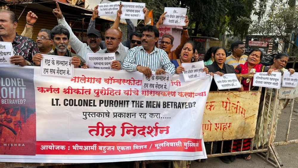 मूलनिवासी मुस्लिम मंच के अध्यक्ष अंजुम इनामदार ने कहा कि मालेगांव विस्फोट का मामला अभी अदालत में है, इस बीच इस किताब के विमोचन के लिए इस तरह का आयोजन ठीक नहीं है। हमारा विरोध प्रदर्शन पुरोहित के खिलाफ है।