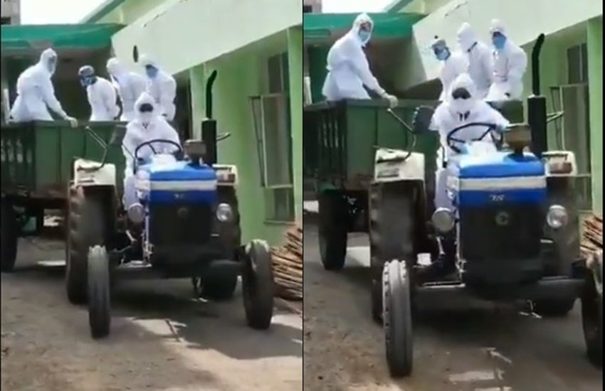 तेलंगाना के पेड्डापल्ली जिले में कोरोना वायरस के मरीज की मौत के बाद उसका अंतिम संस्कार करने को लेकर स्वास्थ्य कर्मचारियों में उपजे भय को दूर करने के लिए एक चिकित्सक स्वयं ही ट्रैक्टर चलाकर शव को श्मशान घाट तक लेकर गया। अधिकारियों ने सोमवार (13 जुलाई, 2020) को बताया कि रविवार को एक सरकारी अस्पताल में कोविड-19 मरीज की मौत हो गई। जिले के इस अस्पताल में संक्रमण से मौत का यह पहला मामला था और शव को ले जाने के लिए तत्काल एम्बुलेंस उपलब्ध नहीं हो सकी। इसके बाद ट्रक्टर की व्यवस्था की गई।