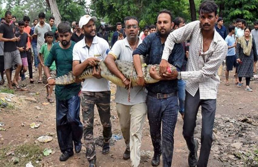 पकड़ा गया था मगरमच्छः बता दें गुजरात में कई दिनों से मूसलाधार बारिश हो रही है। वडोदरा वासियों को लिए बारिश के साथ-साथ मगरमच्छ का भी डर सता रहा है। शनिवार (3 अगस्त) को राष्ट्रीय आपदा मोचन बल (एनडीआरएफ) द्वारा टीम ने बाढ़ग्रस्त वडसर से 10 फुट लंबे मगरमच्छ को पकड़ा था।