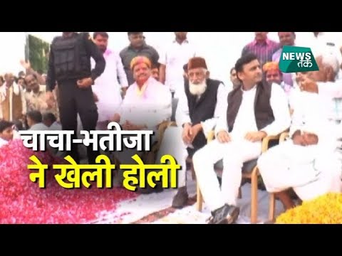 उत्तर प्रदेश के पूर्व मुख्यमंत्री अखिलेश यादव और उनके चाचा शिवपाल यादव ने शुक्रवार (2 मार्च) को अपने पैतृक गांव सैफई में होली के एक कार्यक्रम में साथ में मंच साझा किया। इस दौरान अखिलेश यादव ने चाचा शिवपाल यादव के कुर्सी से उठकर पैर छुए, लेकिन समारोह में एक-दूसरे का नाम लिए बगैर निशाना भी साधा। ईटीवी भारत यूपी के यूट्यूब चैनल पर जारी किए गए एक वीडियो में शिवपाल यादव कहते हुए दिख रहे हैं कि जहां पर एकता होती है, वहां त्योहार और खुशी से मनाया जाता है। समारोह में शिवपाल समर्थकों की तरफ से उनके समर्थन में नारे लगाए गए थे, जिन्हें लेकर अखिलेश यादव ने आपत्ति दर्ज कराई। अखिलेश यादव ने शिवपाल यादव का नाम लिए बगैर कहा- ”कुछ लोग कभी सुधर नहीं सकते, कुछ लोग सुधर जाओ तो अच्छा है, होली का त्योहार खुशी से मनाएं हम लोग क्योंकि आगे देखना है, आगे क्या रास्ता है।”