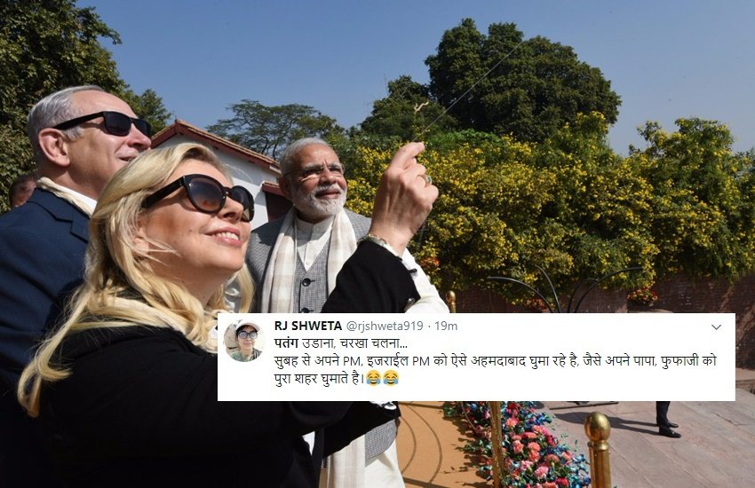 सुबह से अपने PM, इजराईल PM को ऐसे अहमदाबाद घुमा रहे है, जैसे अपने पापा, फुफाजी को पुरा शहर घुमाते है #Duniyaadari #RjShweta#YaadHai— RJ SHWETA (@rjshweta919) January 17, 2018
