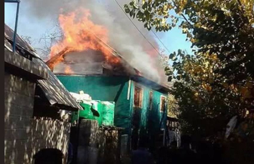 J&K: House of former Sarpanch Ramzan Sheikh(who was killed by terrorists yesterday) set on fire in Shopian. Family rescued by Police pic.twitter.com/8Qn4POXs9r