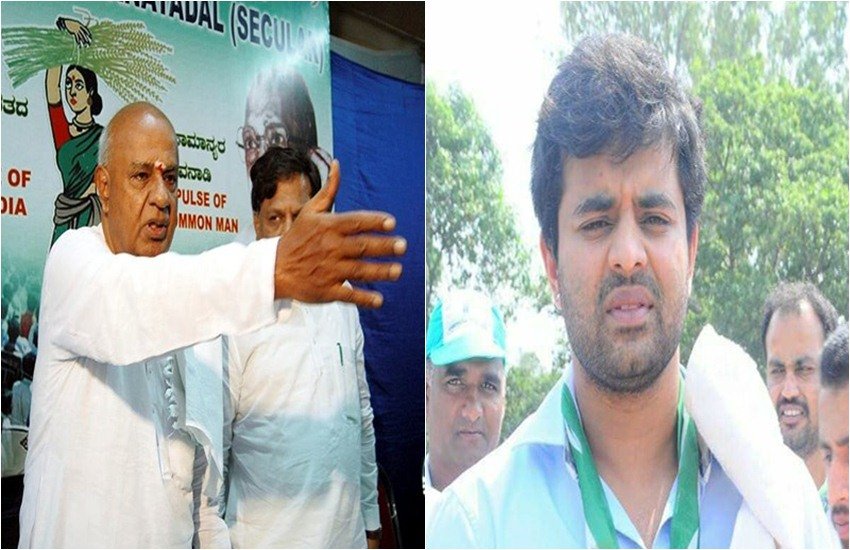 कर्नाटक चुनाव से पहले पूर्व प्रधानमंत्री और जनता दल सेक्यूलर (जेडीएस) अध्यक्ष एचडी देवगौड़ा के परिवार में कलह सतह पर आ गई है। शुक्रवार (30 मार्च) को एच डी देवगौड़ा ने अपने संसदीय क्षेत्र हासन में ऐलान किया कि वो 2019 में चुनाव नहीं लड़ेंगे क्योंकि तब उनकी उम्र 85 साल की हो जाएगी और वो नहीं चाहते की व्हीलचेयर पर संसद जाएं। उन्होंने कहा कि अगर पार्टी के लोग चाहेंगे तो उनका पोता प्राजवल रेवन्ना उनकी जगह इस संसदीय सीट का प्रतिनिधित्व करेगा। उन्होंने कहा कि प्राजवल शिक्षित और सक्षम है। बता दें कि प्राजवल एच डी देवगौड़ा के बड़े बेटे और विधायक एच डी रेवन्ना के बेटे हैं। पिछले साल नवंबर में उन्हें पार्टी का महासचिव नियुक्त किया गया था। राजनीति में देवगौड़ा परिवार की यह तीसरी पीढ़ी है।