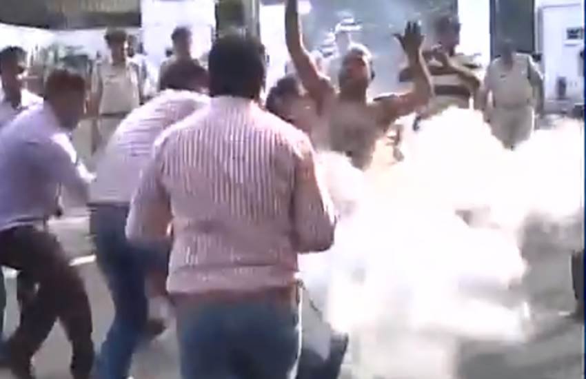 WATCH:Man tries to immolate himself, demands arrest of outgoing MP Governor Ram Naresh Yadav in Vyapam Scam (Bhopal) pic.twitter.com/pkpPbhNP6H