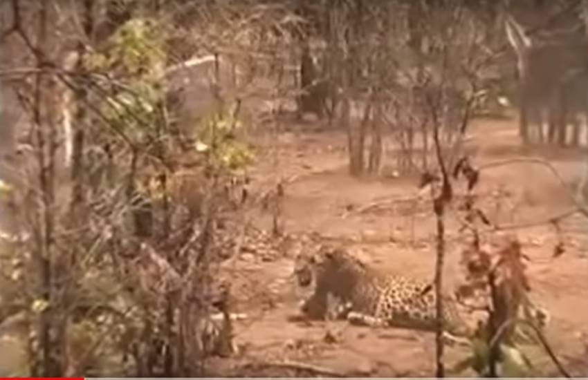 यह भी नजर आ रहा है कि तेंदुए के पैरों में चोट लगी है और वो लड़खड़ा रहा है। कई घंटों की कड़ी मशक्कत के बाद बड़ी मुश्किल से इस तेंदुए पर काबू पाया जा सका। बाद में वन अधिकारियों ने इसे पकड़कर इसके चोटिल पैरों का इलाज किया। यह वाकया चंद्रपुर के मूल रोड के पास लोहरा जंगल की है। घायल तेंदुए को सबसे पहले स्थानीय गांव वालों ने देखा था। गांव वालों ने ही वन विभाग को इस बात की जानकारी भी दी थी, लेकिन इससे पहले की वन अधिकारी वहां पहुंचते यह तेंदुआ झाड़ियों में छिप गया था। जब वन अधिकारी उसे तलाश रहे थे तो उसने इन अधिकारियों पर हमला बोल दिया। तेंदुआ बेहद गुस्से में था और उसके हमले में कई लोग घायल भी हो गए। तेंदुए को बड़ी मुश्किल से बेशो किया जा सका। वन अधिकारियों के मुताबिक घायल होने पर यह जानवर काफी गुस्सैल हो जाते हैं और किसी पर भी हमला कर देते हैं।