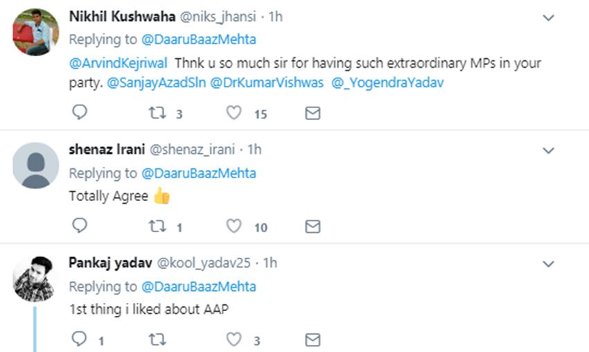 आप सांसदों की यह चिट्ठी सोशल मीडिया भी वायरल हो रही है। टि्वटर यूजर्स ने इस मांग के लिए दिल्ली के मुख्यमंत्री अरविंद केजरीवाल को शुक्रिया अदा करते हुए कहा है कि आपकी पार्टी में कमाल के सांसद हैं। काम नहीं तो पैसे नहीं। सांसदों और नेताओं को भी आम लोगों की तरह की महसूस कराया जाना चाहिए। वहीं, एक अन्य यूजर ने कहा कि उसे पार्टी के बारे में यह पहली बात पसंद आई है।