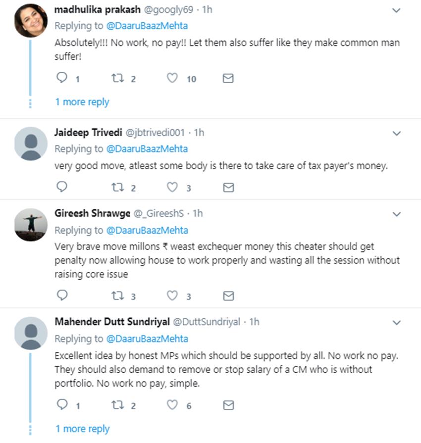 If MPs dont raise issues of Janta in the Upper House and adjourn the House, Why should they get salary for that day? pic.twitter.com/IsfEosWDQe