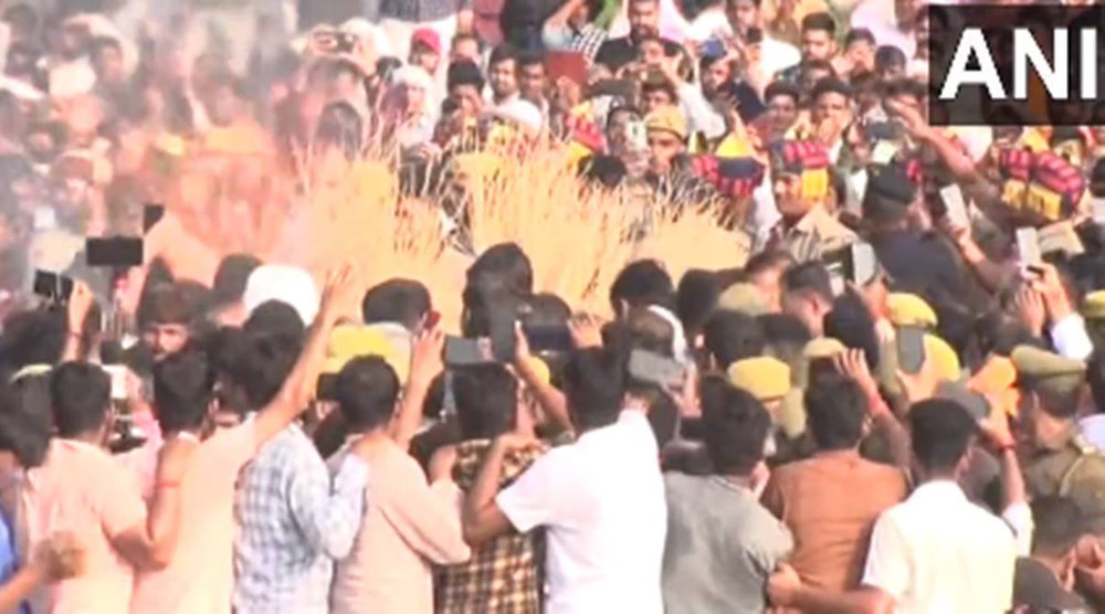 बाबा रामदेव भी सपा संरक्षक के अंतिम संस्कार में पहुंचे, हजारों की भीड़ मौजूद, कुछ देर में मुलायम सिंह यादव पंचतत्व में विलीन हो जाएंगे।
