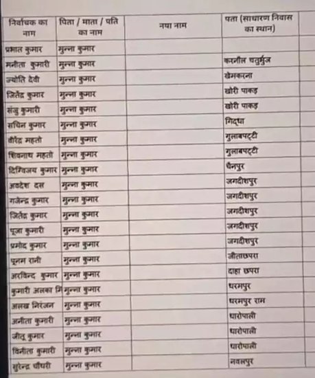 बिहार के मुजफ्फरपुर में एक हैरान करने वाला मामला सामने आया है। यहां एक व्यक्ति को 138 बच्चों का पिता बना दिया गया। तिरहुत स्नातक उपचुनाव की मतदाता सूची को देखकर लोग हैरान हो गए। इनमें हिुंदू और मुस्लिम समुदाय के लोगों के पिता का नाम मुन्ना कुमार लिखा गया। मामला औराई प्रखंड के बूथ संख्या 54 से जुड़ा है। इस बूथ पर कुल 724 वोटर्स हैं। इस लिस्ट के सामने आने के बाद वोटर्स से लेकर प्रत्याशी और अधिकारी भी हैरान हैं।