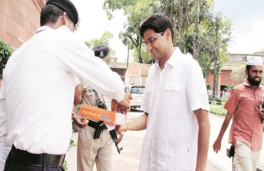 संसद में आमतौर पर दरकिनार रहने वाले सुरक्षाकर्मी बुधवार को चौंक गए। दरअसल, कांग्रेस सांसद दीपेन्द्र हुड्डा उनके पास गए, उन्हें मिठाई का डिब्बा पकड़ाया और बताया कि वे चाचा बन गए हैं। हूडा हाल ही में एक बेटे के पिता बने हैं। वे बुधवार को संसद के एक गेट से दूसरे गेट तक लड्डू का डिब्बा लिया घूमते नजर आए, जो उन्होंने राजस्थान से मंगाए थे। हुड्डा ने इस मौके पर पत्रकारों को अपने पिता, भूपिन्दर सिंह हुड्डा की अपने बेटे के साथ एक तस्वीर भी दिखाई, जो उन्होंने ट्विटर पर शेयर की थी। रविवार (7 जुलाई) को हरियाणा के पूर्व सीएम भूपेंद्र सिंह हुड्डा दादा बन गए। उनके इकलौते बेटे सांसद दीपेन्द्र हुड्डा की दूसरी पत्नी श्वेता ने लड़के को जन्म दिया है। फरवरी 2010 में दीपेंद्र की शादी श्वेता मिर्धा हुड्डा से हुई थी।
