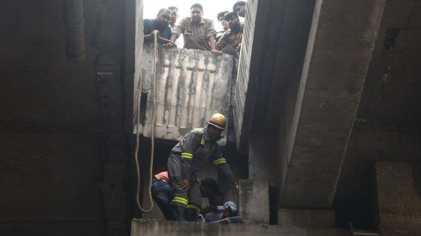 सूचना मिलते ही पुलिस मौके पर पहुंची। पुलिस और फायर की रेस्क्यू टीम ने लड़की को सुरक्षित बचा लिया। उसे एंबुलेंस से अस्पताल भेजा गया। बचाव के लिए वहां मौजूद दो लोगों को भी नीचे उतारा गया और अस्पताल भेजा गया। वैगनआर कार ने लड़की की स्कूटी को टक्कर मारी थी।