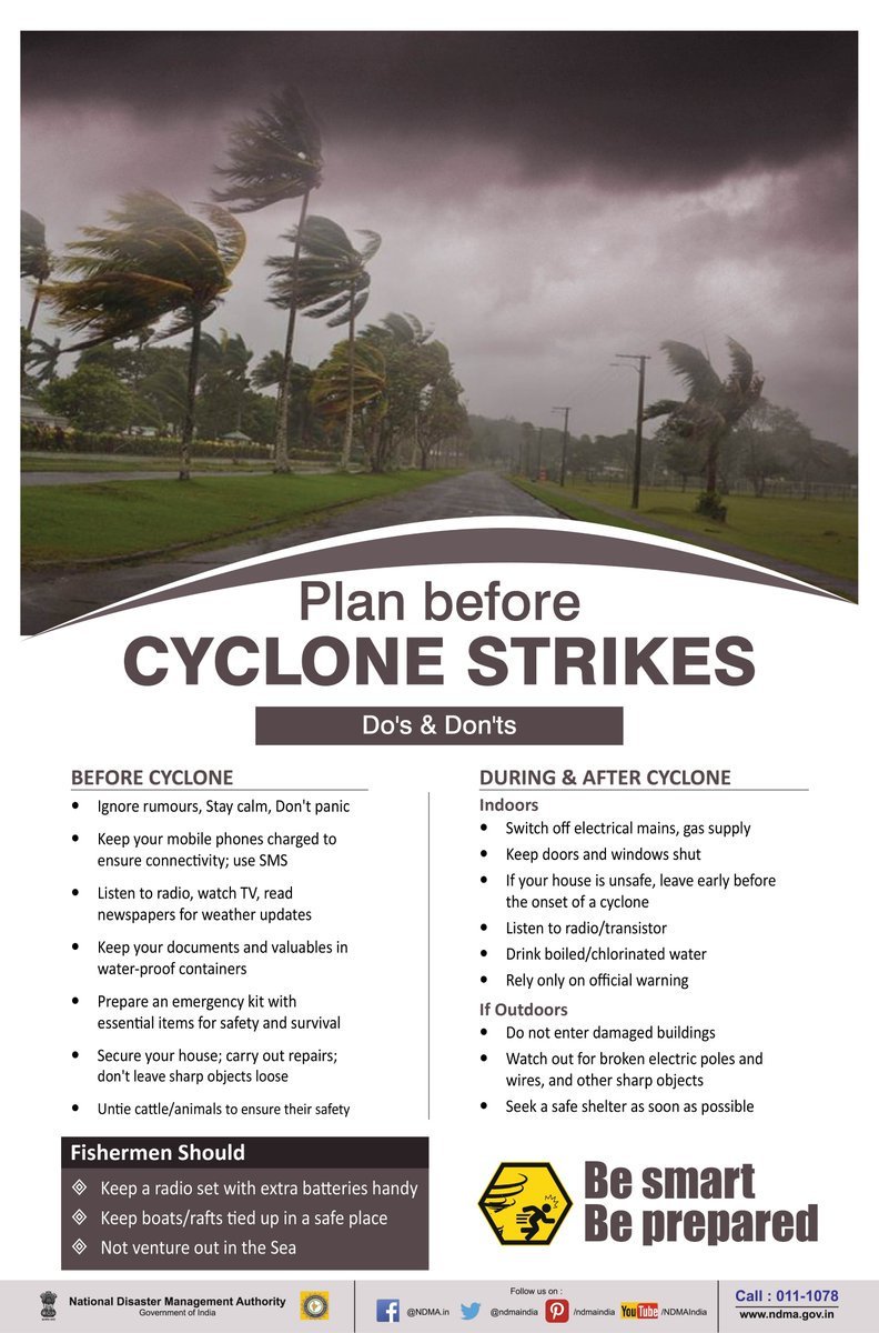 राष्ट्रीय आपदा प्रबंधन प्राधिकरण (एनडीएमए) ने चक्रवाती तूफान के मद्देनजर लोगों को सावधान किया। 'डूज एंड डोंट्स' की सूची में जानें क्या-क्या बताया गया है।