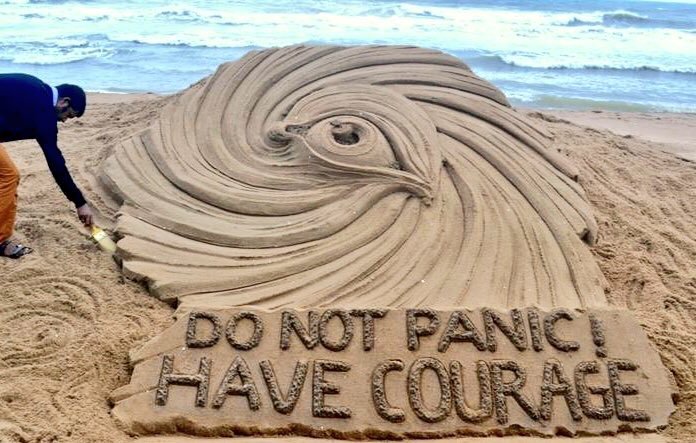 देश के जाने-माने रेत कलाकार सुदर्शन पटनायक ने कहा है कि तितली चक्रवात को लेकर हैरान होने की जरूरत नहीं है। लोगों को हिम्मत रखनी चाहिए और इसके लिए तैयार और सुरक्षित रहना चाहिए। जरूरत पड़ने पर लोगों को दूसरों की मदद भी करनी चाहिए।