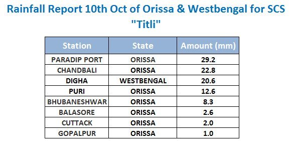 बंगाल की खाड़ी में दबाव बनने की वजह से बंगाल के उत्तर और दक्षिण 24 परगना, हावड़ा, बर्धमान, पूर्व और पश्चिमी मिदनापुर, नादिया और मुर्शिदाबाद जिले में भी बारिश होने की संभावना है। वहीं, ओडिशा सरकार ने तेज तूफान को लेकर चेतावनी जारी की है। तितली की वजह से ओडिशा के गंजम, खुर्दा और पुरी के तटवर्ती इलाके और आंध्र प्रदेश के श्रीकाकुलम जिले के प्रभावित होने की आशंका है। मछुआरों को हिदायत दी गई है कि वह शुक्रवार तक मछली पकड़ने न जाएं।