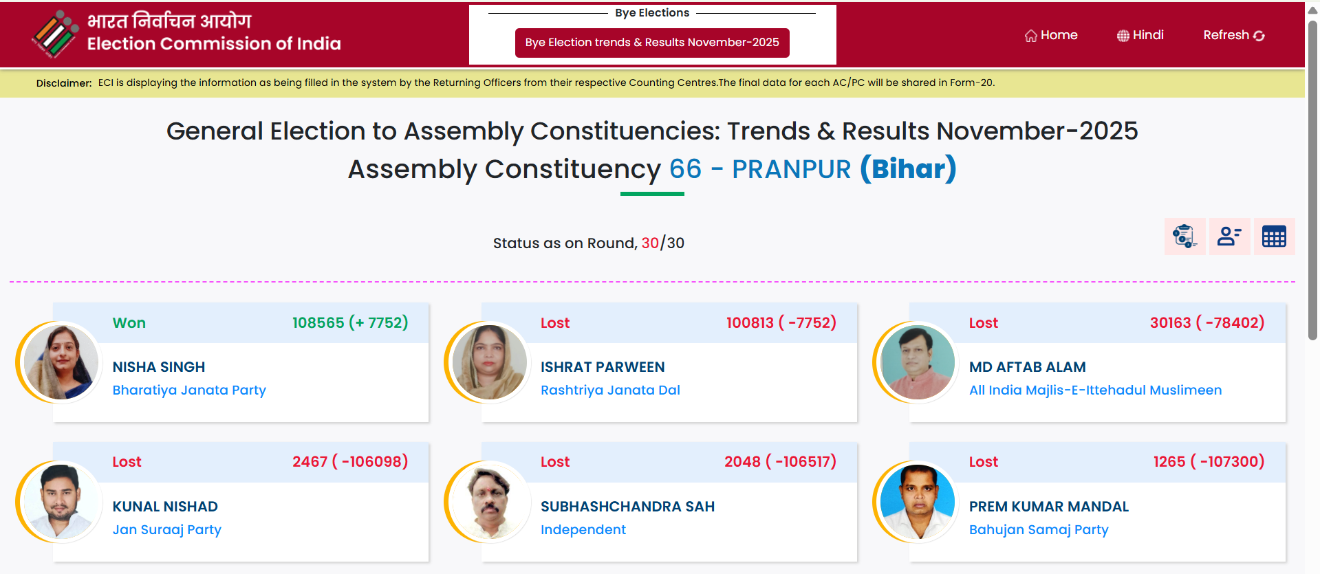 Bihar Election Commission Result 2025 LIVE: यहां जानें चुनाव आयोग की वेबसाइट पर कौन चल रहा आगे
