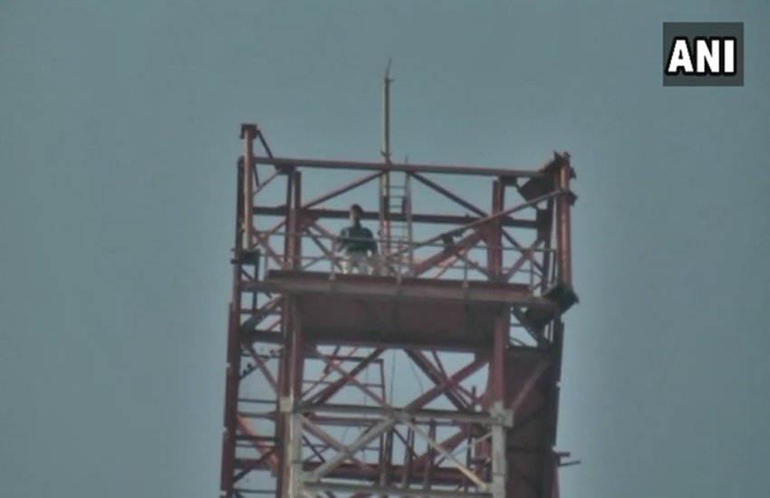 युवक की पहचान उपेन्द्र सिंह के तौर पर की गई है। उसके टावर पर चढ़ने की जानकारी मिलते ही पुलिस प्रशासन के आला अधिकारी मौके पर पहुंच गए। टावर के नीचे भीड़ लग गई और आग्रह के बाद भी उपेंद्र टावर से उतरने को तैयार नहीं है। घटना की जानकारी मि‍लने के बाद करणी सेना के कार्यकर्ता भी बीएसएनएल कार्यालय में बड़ी संख्या में जमा हो गए। दूसरी तरफ, जयपुर में भी करणी सेना के कार्यकर्ताओं ने उग्र प्रदर्शन किया। सोशल नेटवर्किंग साइट पर उपेंद्र के कारनामे पर तीखी प्रति‍क्रि‍या व्‍यक्‍ती की गई है। कोमल ने ट्वीट कि‍या, ‘ऊपर ही बैठे रहने दो।’ अभि‍षेक ने लि‍खा, ‘नहीं उसको नीचे उतार कर जबरन कि‍सी थि‍एटर में रस्‍सी से बांध कर पद्मावत दि‍खाओ।’ सानिया सैय्यद ने ट्वीट कि‍या, ‘कि‍सी को भी उसे गंभीरता से नहीं लेना चाहि‍ए। उसे वहां 24 घंटों तक रहने दो। खुद नीचे आ जाएगा।’