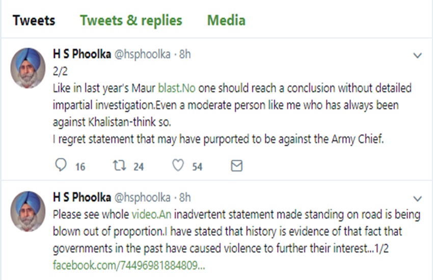 पंजाब में अमृतसर के बाहरी इलाके में रविवार (18 नवंबर) को एक धार्मिक समागम में हुए ग्रेनेड हमले में तीन लोगों की मौत हो गई और 20 अन्य घायल हो गये। अमृतसर के राजा सांसी के समीप अदलिवाला गांव में निरंकारी भवन में निरंकारी पंथ के धार्मिक समागम के दौरान यह विस्फोट हुआ। यह स्थान अंतरराष्ट्रीय हवाईअड्डे के समीप है। इस ब्लास्ट के बाद आम आदमी पार्टी के विधायक एच एस फुल्का ने चौंकाने वाला बयान दिया है। उन्होंने इस ब्लास्ट के पीछे सेना प्रमुख जनरल बिपिन रावत का हाथ होने की आशंका जताई है। उन्होंने कहा, “कुछ समय पहले सेना प्रमुख ने कहा था कि राज्य में आतंकी हमले का खतरा है। हो सकता है उन्होंने अपनी बात को सही साबित करने के लिए अमृतसर में ब्लास्ट करवाया हो। इस समय देश का माहौल खराब करने की भी कोशिश की जा सकती है क्योंकि कुछ समय बाद ही चुनाव होने वाले हैं।” हालांकि, मामला तूल पकड़ने के बाद उन्होंने कहा कि मेरे बयान को तोड़-मरोड़कर पेश किया गया। मैं आर्मी चीफ का सम्मान करता हूं।