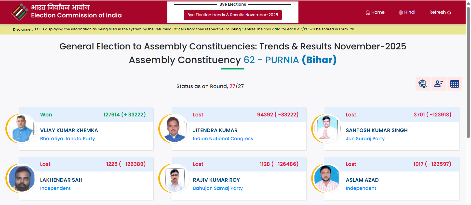 Bihar Election Commission Result 2025 LIVE: यहां जानें चुनाव आयोग की वेबसाइट पर कौन चल रहा आगे