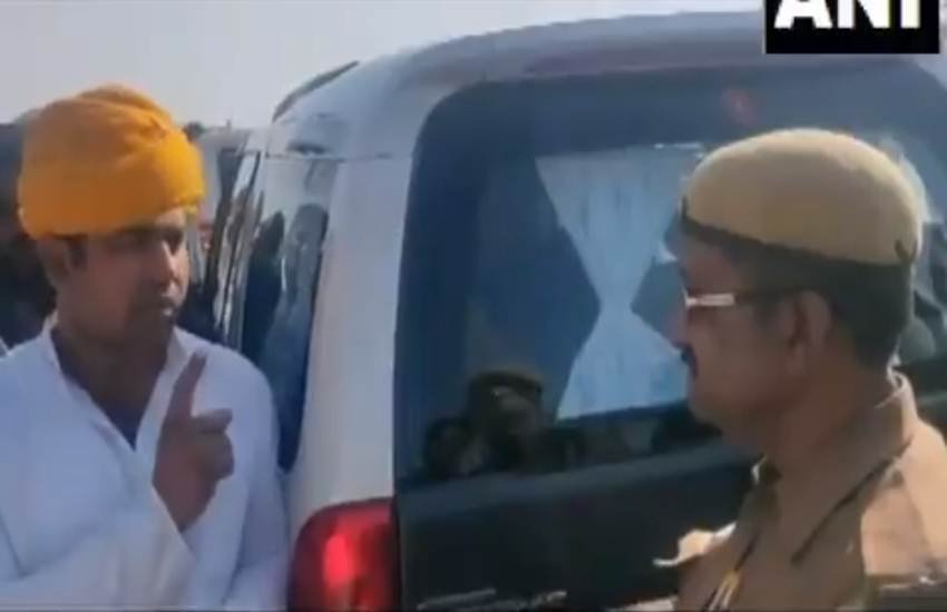 #WATCH: Youth affairs & sports Minister of Rajasthan Ashok Chandna rebukes a police personnel in Bundi, warning him that he’ll be transferred to duty at toll plaza if found collecting money illegally from villagers. Villagers had accused him of collecting money from them at toll. pic.twitter.com/1sJ1zCD8jD