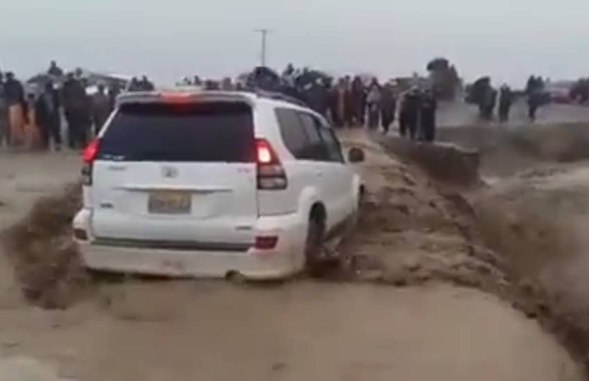 राजस्थान के बाड़मेर जिले में शुक्रवार को एक नदी में अचानक पानी का स्तर बढ़ जाने से एक प्रशासनिक अधिकारी की जीप तेज बहाव में बह गयी। जीप में चालक और कुशलगढ़ के उपखंड अधिकारी सवार थे। चालक को बचा लिया गया है। पुलिस ने बताया कि कुशलगढ़ के उपखंड अधिकारी रामेश्वर मीणा जीप से बांसवाड़ा से शुक्रवार को सुबह कुशलगढ़ आ रहे थे। कालींजारा पुल को पार करते समय नदी का बहाव अचानक बढ़ गया, जिसमें वह जीप सहित बह गये। तेज बहाव में बहे जीप चालक अशोक को एक किलोमीटर की दूरी पर बचा लिया गया, जबकि अधिकारी की तलाश की जा रही है।