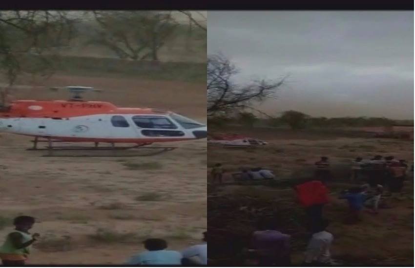 Rajasthan: A chopper made an emergency landing in Jaipur's Chaksu, due to bad weather pic.twitter.com/aVJ1VsMR9D