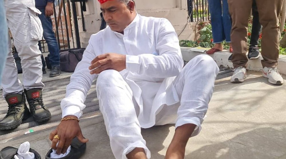 राजस्थान में गर्मी की शुरुआत के साथ ही पारा आसमान छू रहा है, तापमान 42-43 डिग्री सेल्सियस तक पहुंच रहा है। इस प्रचंड गर्मी में भी कांग्रेस के एक विधायक पैरों में जूते पहने बिना सार्वजनिक कार्यक्रम में शामिल होते रहे हैं। अपनी पार्टी के विधायक से सीएम अशोक गहलोत कई बार जूते पहनने को कह चुके हैं लेकिन मदन प्रजापत अपने प्रण पर टिके हुए हैं। जब कांग्रेस विधायक से पूछा गया तो उन्होंने इससे जुड़ा एक वाकया बताया कि कैसे वह सीएम गहलोत की डिनर पार्टी से बिना खाना खाए वापस आ गए थे।
