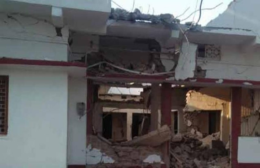 Gaya: Residence of former MLC & BJP leader Anuj Kumar Singh in Dumariya blasted with dynamite by Naxals last night. No casualties reported. The Naxals also left a poster demanding boycott of elections. Police investigation underway. #Bihar pic.twitter.com/bcr8xNQczX