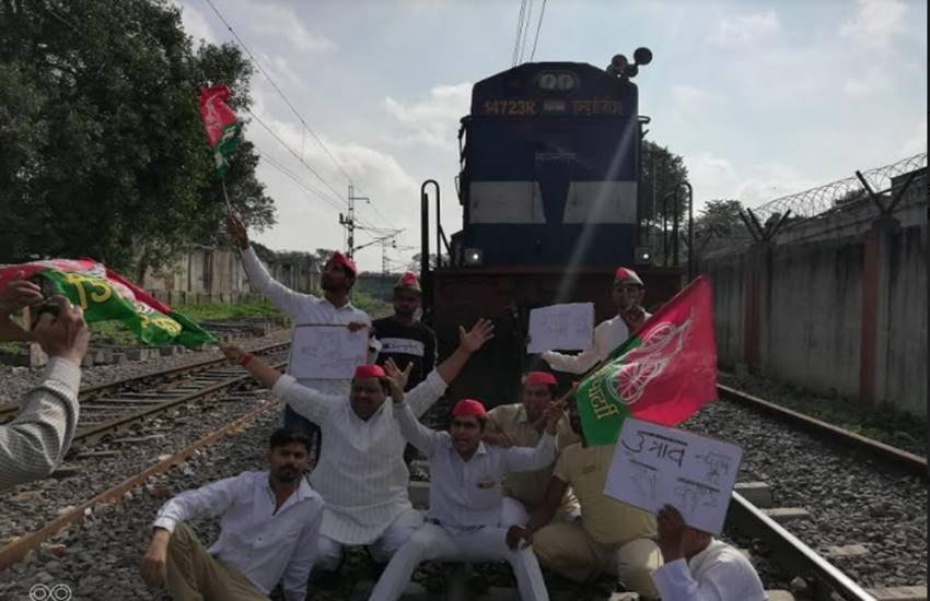 ट्रेन रोककर किया प्रदर्शनः 8 अगस्त (शुक्रवार) को सुबह लखनऊ फाटक के पास सपा कार्यकताओं ने समस्तीपुर एक्सप्रेस को रोक लिया। कार्यकर्ताओं के प्रदर्शन की वजह से ट्रेन लगभग 15 मिनट तक रूकी रही। जब इसकी जानकारी जीआरपी, आरपीएफ और पुलिस को मिली तो ट्रैक से कार्यकर्ताओं को हटाया गया, इसके बाद ट्रेन को रवाना किया गया। इसके बाद सपा कार्यकर्ताओं ने शिक्षा पार्क में धरना प्रदर्शन किया। इस मौके पर सपा नगर अध्यक्ष मोईन खान ने कहा कि सरकार से 25 सूत्रीय मांग को लेकर शुक्रवार (9 अगस्त) प्रदेश के सभी मुख्यालयों पर धरना दिया गया है।