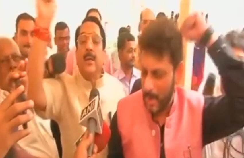 महाराष्ट्र विधानसभा के बाहर ‘वंदे मातरम’ को लेकर बीजेपी और AIMIM के विधायकों में बहसबाजी हुई। शुक्रवार (28 जुलाई) को दोनों एक दूसरे की आवाज दबाते हुए नारेबाजी कर रहे थे। बीजेपी विधायक राज पुरोहित AIMIM के वारिस पठान के सामने वंदे मातरम का नारा लगा रहे थे। वहीं वारिस खान वह नारा लगाने को मना कर रहे थे। राज पुरोहित ने वारिस पठान से यह भी कहा कि अगर वह वंदे मातरम नहीं कहना चाहते तो उनको पाकिस्तान चले जाना चाहिए। वीडियो जो सामने आया है उसमें राज को पठान से कहते हुए देखा जा सकता है कि अगर हिंदुस्तान में रहना है तो वंदे मातरम कहना होगा। इसपर पठान ‘जय हिंद’, ‘हिंदुस्तान जिंदाबाद’ के नारे लगाने लगते हैं।