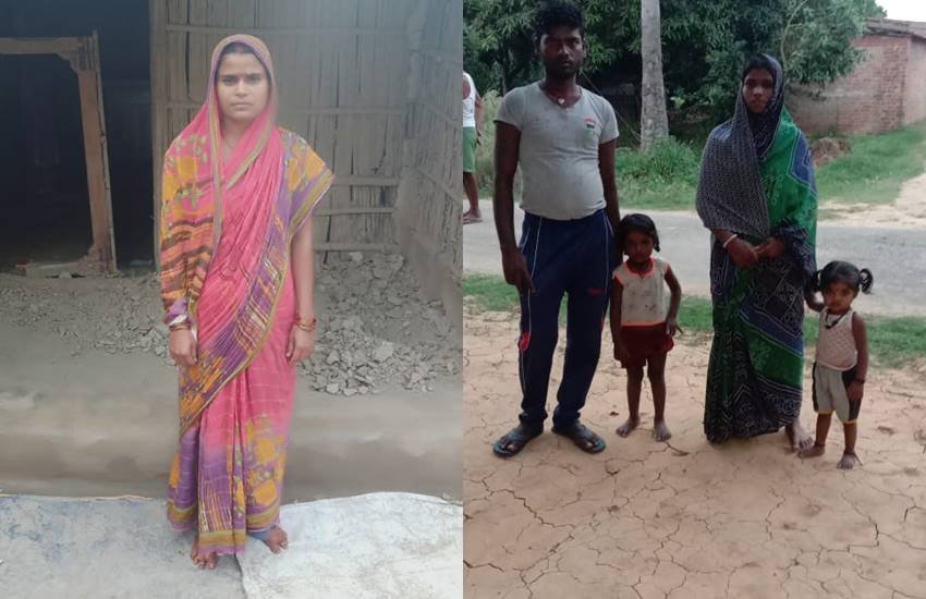 फोटो1-पीरपैंती धुनियांचक के प्रवीण पासवान अपनी पत्नी काजल कुमारी और बच्चों के साथ। फोटो2- नवगछिया के खैरपुर पंचायत के लखमनियाँ ग़ांव की मंचन देवी। इनके पास राशन कार्ड नहीं है। इन्हें न राशन मिला न पैसा।