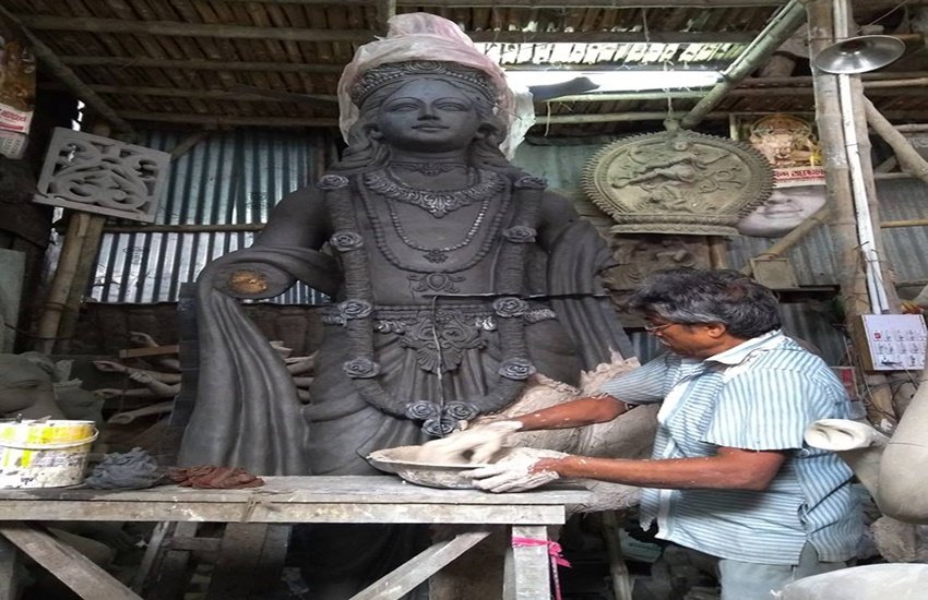 देशभर में और खासतौर से पश्चिम बंगाल में इन दिनों जय श्री राम के नारे को लेकर सियासत उफान पर है। आए दिन इस नारे को न बोलने पर हमलों की घटनाएं सामने आ रही हैं। दावों के मुताबिक भले ही बीजेपी पर हिंदुत्व के मुद्दे को भुनाने का आरोप लगता रहा है लेकिन पश्चिम बंगाल में अब तृणमूल कांग्रेस भी पीछे नहीं दिख रही। इन दिनों कोलकाता में गणेश चतुर्थी और दुर्गा पूजा के मद्देनजर मूर्तियां बनाई जा रही हैं। इसी बीच भगवान राम की मूर्ति को लेकर चर्चाएं हो रही है। यह मूर्ति बीजेपी नहीं बल्कि टीएमसी के एक नेता ने बनवाई है। राज्य में टीएमसी के विधायक परेश पॉल बनवा रहे हैं। राम के साथ-साथ यहां सीता, लक्ष्मण और हनुमान की मूर्तियां भी लगेंगी।