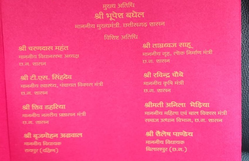 सीएम के अलावा राज्य के गृह मंत्री ताम्रध्वज साहू, कृषि मंत्री रविंद्र चौबे, नगरीय प्रशासन मंत्री शिव डहरिया, स्वास्थ्य मंत्री टीएस सिंहदेव आदि के शामिल होने की बात कही जा रही है। इसके अलावा मुख्य विपक्षी दल की ओर से रायपुर दक्षिण से बीजेपी विधायक बृजमोहन अग्रवाल, बिलासपुर से विधायक शैलेष पांडेय और रायपुर के महापौर प्रमोद दूबे आदि कार्यक्रम में शामिल होंगे।