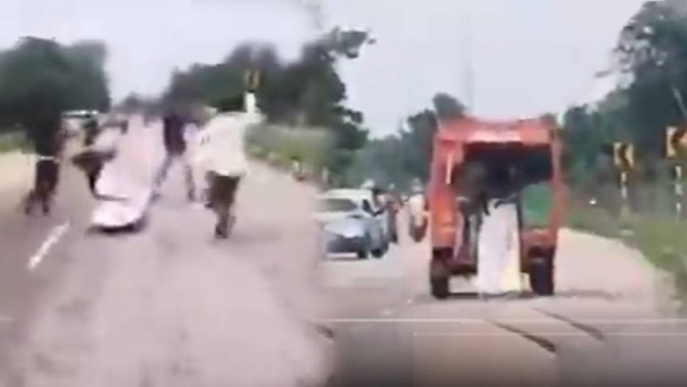 उत्तर प्रदेश के गोंडा में हुई एक घटना ने सभी को हैरान कर दिया है। दरअसल यहां से वायरल हुए वीडियो को लेकर खूब हंगामा हो रहा है, लेकिन सच्चाई कुछ और सामने आ रही है। जानकारी के अनुसार कुछ दिनों पहले हुई मारपीट की घटना के बाद एक शख्स की मौत हो गई थी जिसके शव को लेकर बवाल हुआ। मृतक के घर वाले उसका शव हाईवे पर रखकर विरोध करना चाहते थे लेकिन उसी दौरान जिस एंबुलेंस में उसका शव था वो सड़क पर तेजी से उतारकर वहां से भाग गया। जिसका वीडियो सोशल मीडिया पर खूब वायरल है।