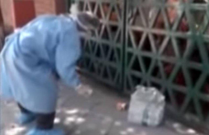 Coronavirus in India: कोरोना वायरस के संदिग्ध मरीजों के लिए यूपी के आगरा में बनाए गए एक क्वारंटाइन सेंटर का वीडियो सामने आया है। वीडियो में पीपीई पहने एक शख्स वहां मौजूद लोगों को कथित तौर पर पानी की बोतलें और खाने के पैकेट फेंककर देता हुआ नजर आ रहा है। वीडियो में दर्जनों लोग एक बड़े से परिसर में लॉक हैं। शख्स जब खाने की चीजें फेंककर पीछे हट जाता है तब ये लोग लोहे के गेट की जालियों से हाथ बाहर निकालकर पानी की बोतलें और अन्य चीजें उठाने लगते हैं। ये वीडियो ऐसे समय में सामने आया है जब केंद्र और राज्य सरकार ने कोरोना को नियंत्रित करने के लिए ‘आगरा मॉडल’ को एक सफलता के रूप में प्रदर्शित किया था।