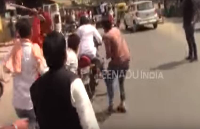 जानकारी के मुताबिक इस दौरान वहां दलित संगठन भीम सेना का एक सदस्य पहुंच गया। मोटरसाइकिल पर सवार भीम सेना के इस सदस्य की बजरंग दल और विहिप के कार्यकर्ताओं ने पिटाई कर दी। वीडियो में दिख रहा है कि मोटरसाइकिल पर सवार एक शख्स अचानक इस विरोध प्रदर्शन के दौरान राजपुर चुंगी पहुंच जाता है। यहां प्रदर्शन कर रहे कुछ युवक मोटरसाइकिल सवार इस शख्स की पिटाई शुरू कर देते हैं। बीच सड़क पर दौड़ा-दौड़ा कर लाठी-डंडों से इस शख्स को पीटा जा रहा है। किसी तरह मोटरसाइकिल सवार यह शख्स भीड़ के चंगुल से खुद को बचाकर वहां से निकल पाता है। इस घटना से संबंधित वीडियो आप कहानी के अंत में देख सकते हैं।