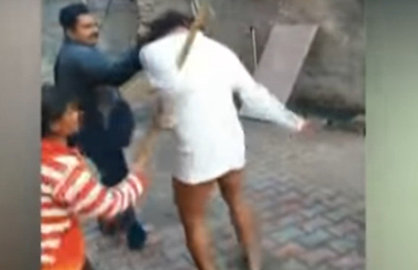 उत्तर प्रदेश के मथुरा से एक वीडियो सामने आया है। वीडियो मथुरा जिले के धार्मिक उपनगर वृंदावन का है। वीडियो में कुछ लोग एक शख्स को पीट रहे हैं। पीटने वालों में महिलाएं भी शामिल हैं। मीडिया रिपोर्ट के मुताबिक वीडियो में सफेद कपड़ों में दिख रहा शख्स स्थानीय मंदिर का पुजारी है। इस पुजारी पर आरोप है कि इसने गांव की ही दो लड़कियों पर बुरी नजर डाली थी और उनके साथ छेड़छाड़ की। लड़कियों के साथ पुजारी द्वारा गलत हरकत करने का मामला सामने आते ही लोग वहां पहुंच गए। लोगों ने पुजारी को घेर लिया और लाठियों से पीटा। आरोपी पुजारी को सड़क पर बिना धोती के पीटा गया। महिलाओं ने भी पुजारी पर लाठियां बरसाईं।
