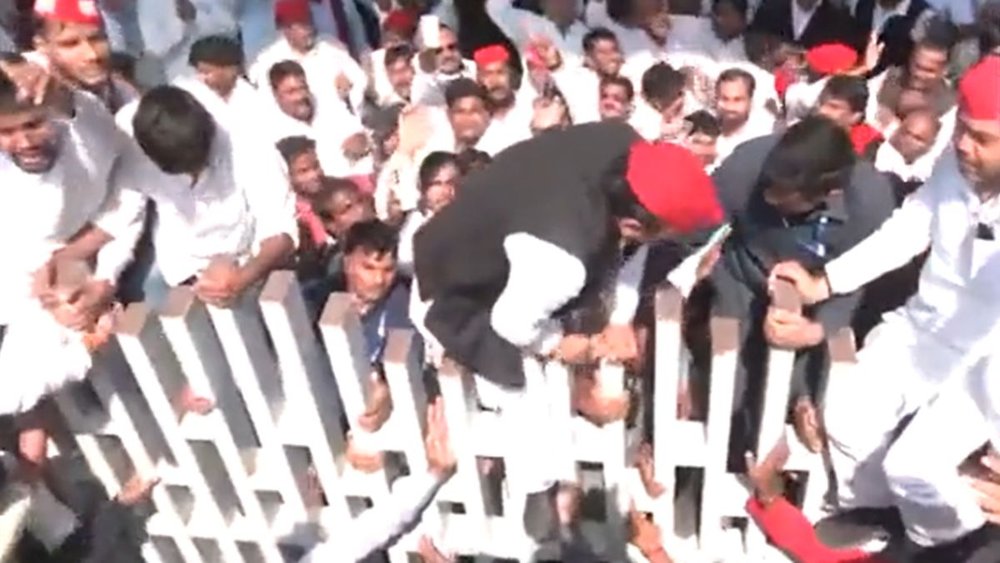 इसके विरोध में बड़ी संख्या में सपा कार्यकर्ता धरने पर बैठ गए। वहीं, JPNIC के बाहर भारी संख्या में पुलिस फोर्स तैनात कर दी गई। इस बीच मौके पर अखिलेश यादव पहुंचे और गेट फांदकर JPNIC के अंदर चले गए। 100 से ज्यादा पुलिसकर्मियों ने उन्हें रोकने की कोशिश की। टीन शेड की दीवार भी खड़ी थी लेकिन अखिलेश नहीं रुके। करीब आठ फीट ऊंचा गेट फांदकर वे अंदर पहुंच गए। उनके पीछे-पीछे कई अन्य सपाई भी जेपीएनआईसी के अंदर पहुंच गए।