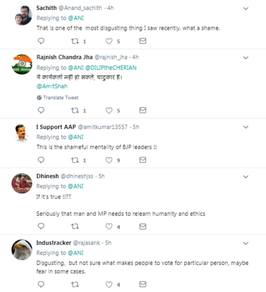 सोशल मीडिया पर जैसे ही यह फोटो और वीडियो सामने आए, लोगों ने सांसद को खरी-खोटी सुनाना शुरू कर दिया। एक यूजर ने कहा, “सांसद ने कार्यकर्ता को रोकने के लिए जरा सी भी कोशिश नहीं की। उनके चेहरा देखिए, जिससे साफ पता चलता है कि वह उस दौरान घटना का आनंद ले रहे थे। यह बेहद शर्मनाक है।” देखिए कैसे बीजेपी सांसद को लोगों ने ट्रोल किया–