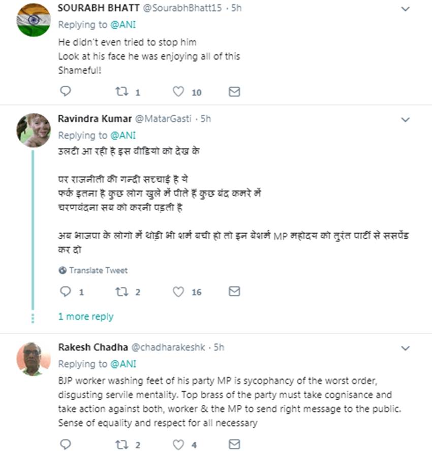 पैर धुलवाकर पानी पीते कार्यकर्ता का फोटो शेयर करने पर भारतीय जनता पार्टी (बीजेपी) के सांसद निशिकांत दुबे को लोगों ने जमकर लताड़ा। सोशल मीडिया यूजर्स ने इस घटना को अंधभक्ति का प्रमाण बताया। लोगों ने इसी के साथ पूछा कि क्या सांसद का यह कृत्य अमानवीय व्यवहार की तरफ इशारा नहीं करता? सांसद, मोदी-शाह के चरण धोकर उस पानी को कब ग्रहण करेंगे? वहीं, एक यूजर ने इसे कार्यकर्ताओं का अपमान करार देते हुए सवाल किया, “क्या बीजेपी में कार्यकर्ताओं की यही औकात है?”