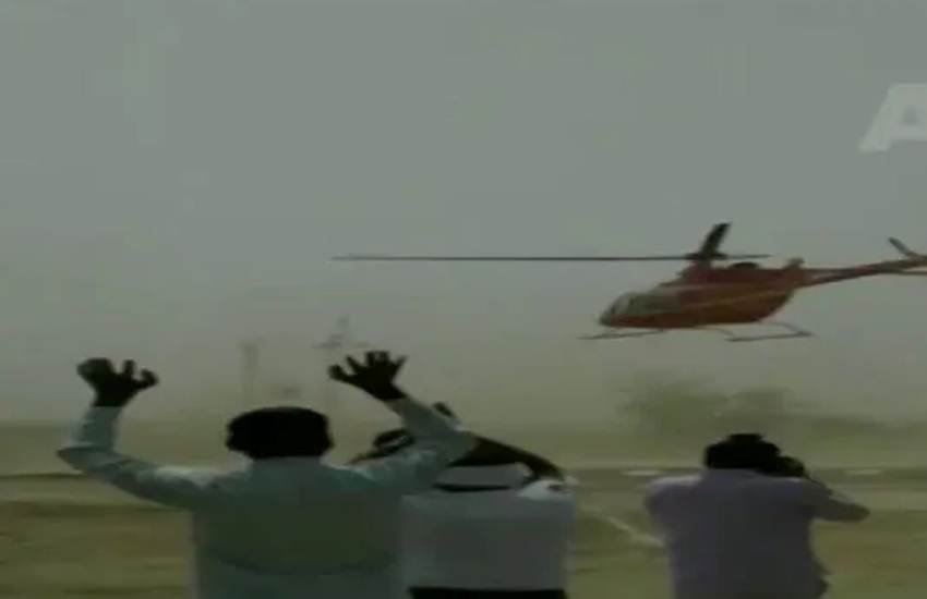 #WATCH Alwar: Chopper with Alwar BJP MP Mahant Balaknath onboard appeared to have lost control but regained it later and flew off. #Rajasthan pic.twitter.com/aIHaIHTMuh