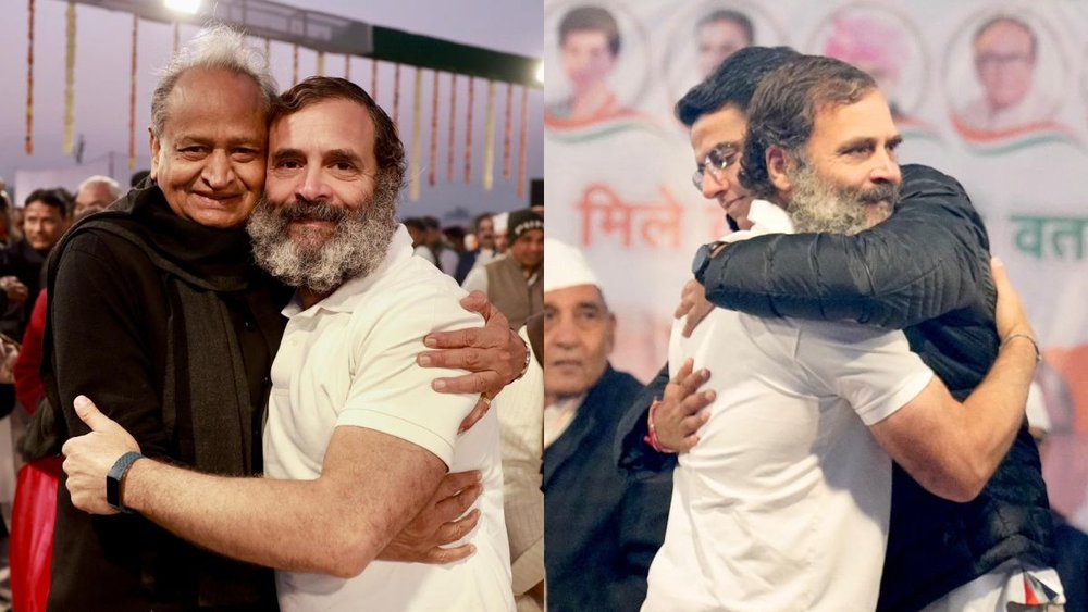 Rajasthan Congress infighting: कांग्रेस (Congress) की भारत जोड़ो यात्रा (Bharat Jodo Yatra) ने जैसे ही राजस्थान से हरियाणा (Haryana) में प्रवेश किया सोशल मीडिया पर दो तस्वीरें वायरल होने लगीं। एक तस्वीर में राहुल गांधी (Rahul Gandhi) राजस्थान (Rajasthan) के मुख्यमंत्री अशोक गहलोत (Ashok Gehlot) के साथ गर्मजोशी से गले मिलते हुए दिखाई दे रहे हैं और दूसरी तस्वीर में राहुल गांधी (Rahul Gandhi) पूर्व डिप्टी सीएम सचिन पायलट (Sachin Pilot) को गले लगाते नजर आ रहे हैं। लेकिन ऐसा लगता है कि कांग्रेस पार्टी राजस्थान में जो संदेश देने की कोशिश कर रही है हकीकत इससे बिल्कुल अलग है।