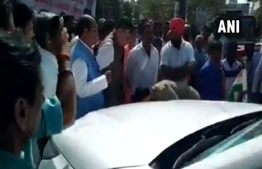 #WATCH: Policeman driving a vehicle in Chief Minister Yogi Adityanath’s convoy touches the feet of Minister Satish Mahana to apologise after his vehicle touched the latter’s car in Kanpur; says, ‘there was little space & I was trying to make space for his car when it happened’ pic.twitter.com/eJWxlz6pNK