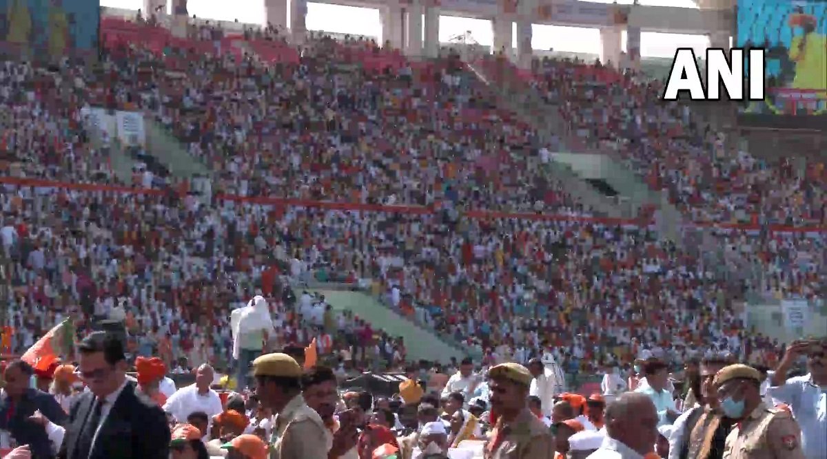 उत्तर प्रदेश के मुख्यमंत्री के तौर पर योगी आदित्यनाथ के दूसरी बार शपथ ग्रहण समारोह के लिए लखनऊ के अटल बिहारी वाजपेयी इकाना क्रिकेट स्टेडियम में लोगों की भीड़ उमड़ी।